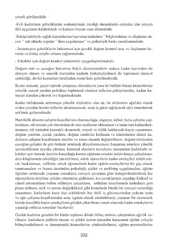 tırılması, süt izninin yol sürelerinin de izin saatlerine eklenmesi ve iznin tam kullandırıl-