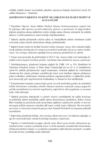 KOMİSYONUN İŞKENCE VE KÖTÜ MUAMELEYE İLE İLGİLİ TESPİT VE
