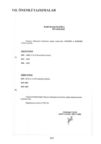 VII. ÖNEMLİ YAZIŞMALAR 341