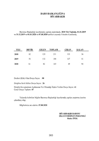 Yukarıda belirtilen bilgiler Baromuz Başkanlığı kayıtlarında yapılan araştırma üzerine
