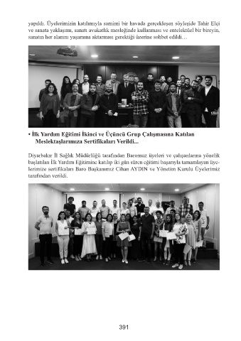 başlatılan İlk Yardım Eğitimine katılıp iki gün süren eğitimi başarıyla tamamlayan üye-