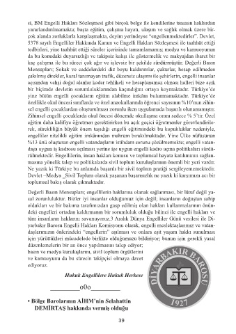 rülmektedir. Engellilerin, insan hakları konusu ve toplumsal hayata katılımının sağlan-