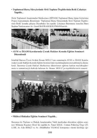 mıza ve sunumlarıyla katkıda bulunan Av. Benan .MOLU’ya teşekkürlerimizi sunarız.