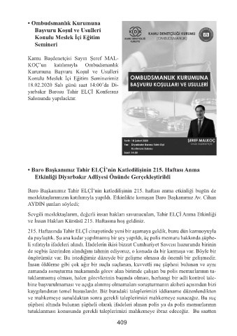 Sevgili meslektaşlarım, değerli insan hakları savunucuları, Tahir ELÇİ Anma Etkinliği