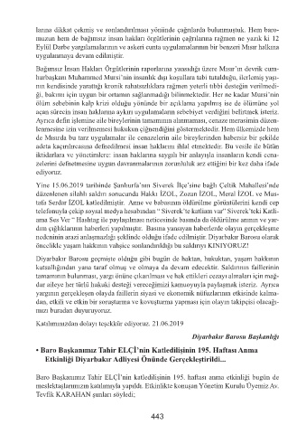 Diyarbakır Barosu geçmişte olduğu gibi bugün de haktan, hukuktan, yaşam hakkının