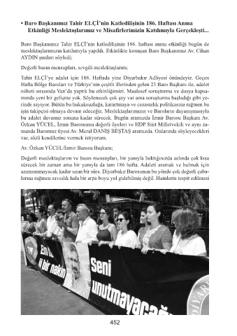 • Baro Başkanımız Tahir ELÇİ’nin Katledilişinin 186. Haftası Anma