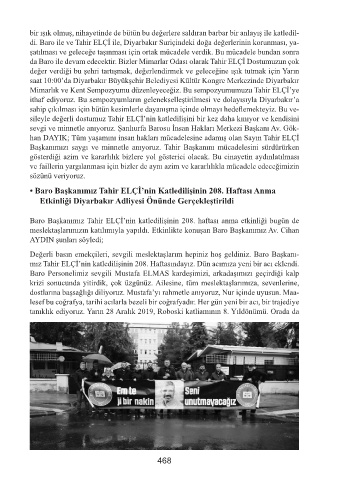 • Baro Başkanımız Tahir ELÇİ’nin Katledilişinin 208. Haftası Anma