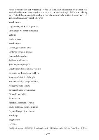 Bildiğiniz üzere 01/08/2019 tarihinde saat 15:00 civarında Hakkari’nin Derecik İlçe-