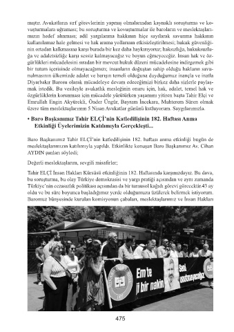 • Baro Başkanımız Tahir ELÇİ’nin Katledilişinin 182. Haftası Anma