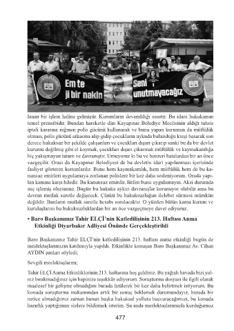 • Baro Başkanımız Tahir ELÇİ’nin Katledilişinin 213. Haftası Anma
