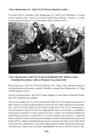 • Baro Başkanımız Tahir ELÇİ’nin Katledilişinin 209. Haftası Anma