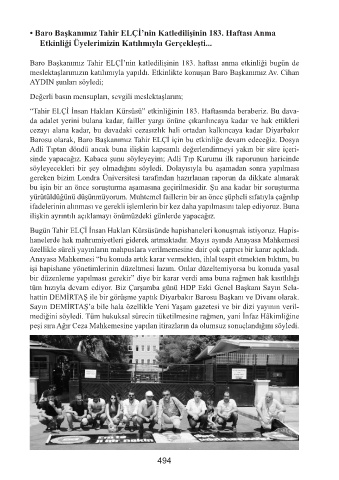 Barosu olarak, Baro Başkanımız Tahir ELÇİ için bu etkinliğe devam edeceğiz. Dosya