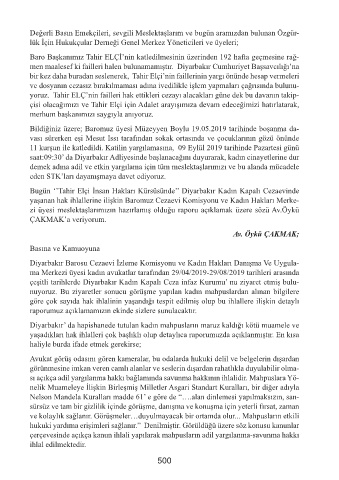 çisi olacağımızı ve Tahir Elçi için Adalet arayışımıza devam edeceğimizi hatırlatarak,
