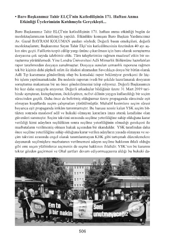 • Baro Başkanımız Tahir ELÇİ’nin Katledilişinin 171. Haftası Anma