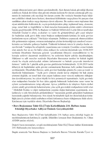 tarihinde Diyarbakır Barosuna gelerek ‘çocuklarının ölmesini istemediklerini ve bu