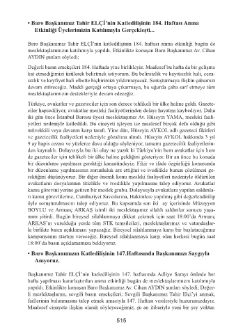 Değerli basın emekçileri 184. Haftada yine birlikleyiz. Maalesef bu hafta da bir gelişme