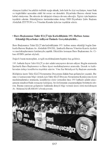 • Baro Başkanımız Tahir ELÇİ’nin Katledilişinin 193. Haftası Anma