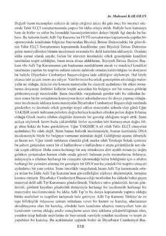 gi alma hakkı da bunu gerektiriyor. Uğur YAKIŞIR’A ait silah Tahir ELÇİ cinayetini