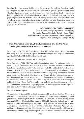 Baro Başkanımız Tahir ELÇİ’nin katledilmesinin üzerinden 176 hafta geçmesine rağ-
