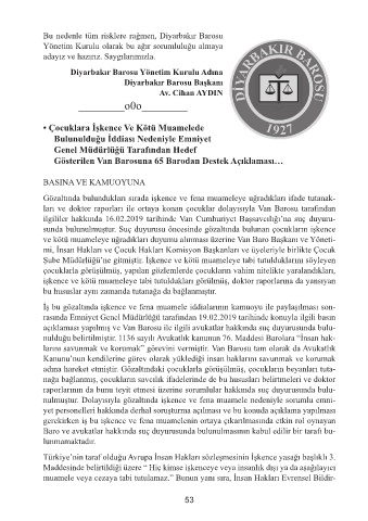 ları ve doktor raporları ile ortaya konan çocuklar dolayısıyla Van Barosu tarafından
