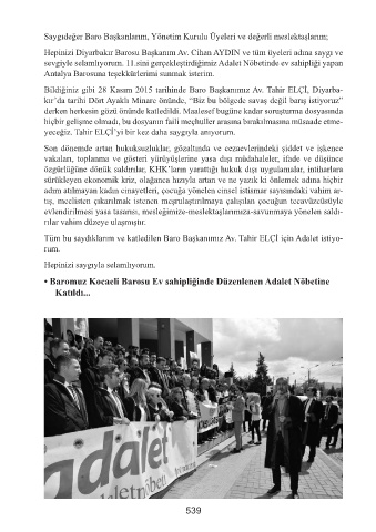Bildiğiniz gibi 28 Kasım 2015 tarihinde Baro Başkanımız Av. Tahir ELÇİ, Diyarba-