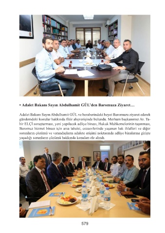 Adalet Bakanı Sayın Abdulhamit GÜL ve beraberindeki heyet Baromuzu ziyaret ederek