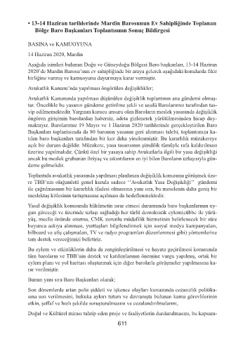 2020’de Mardin Barosu’nun ev sahipliğinde bir araya gelerek aşağıdaki konularda fikir