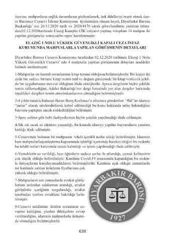 den,02.12.2020tarihinde Elazığ Kampüs CİK’eziyaret yapmış vetoplam 14 mahpus ile