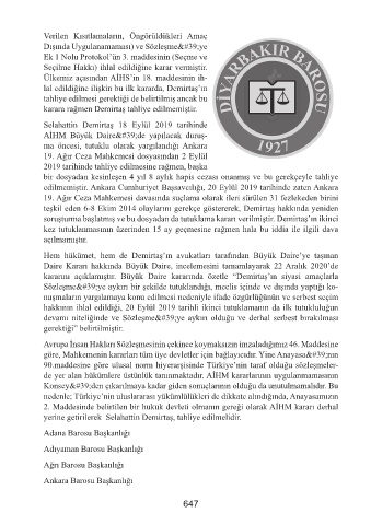 yerine getirilerek Selahattin Demirtaş, tahliye edilmelidir.