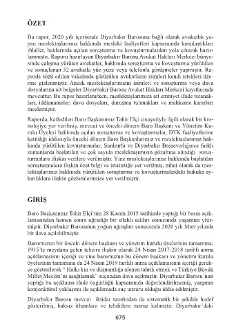 Bu rapor, 2020 yılı içerisinde Diyarbakır Barosuna bağlı olarak avukatlık ya-
