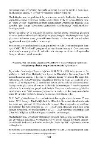 serbest bırakılmış, bir meslektaşımız ise 23.11.2020 tarihinde çıkarıldığı Sulh