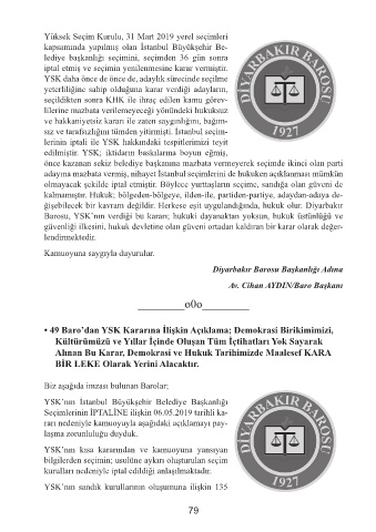 • 49 Baro’dan YSK Kararına İlişkin Açıklama; Demokrasi Birikimimizi,
