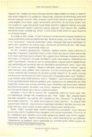 rultuda demokratik haklarlnl kullanmasl hukuka uygundur. o)6a Tasannln 363. maddesi,